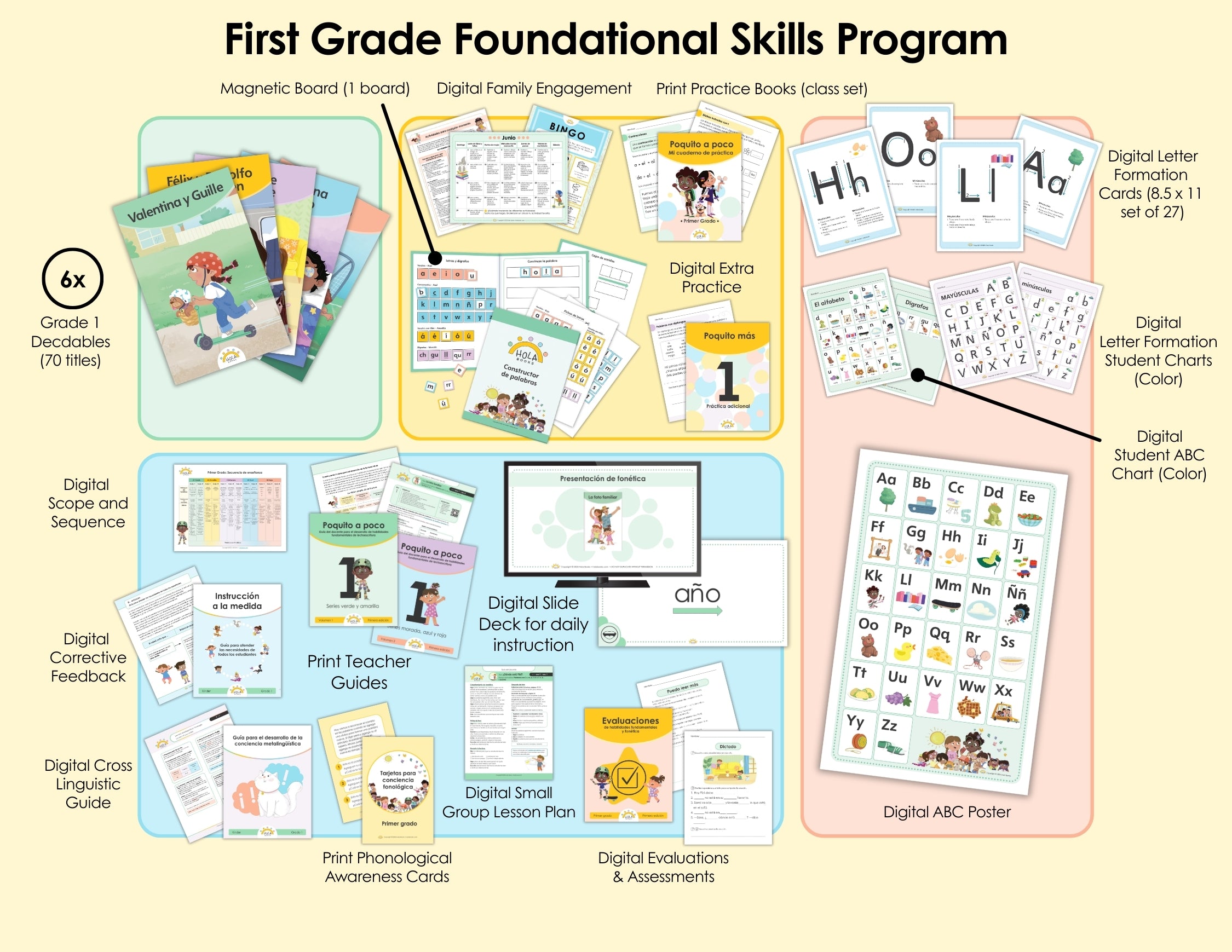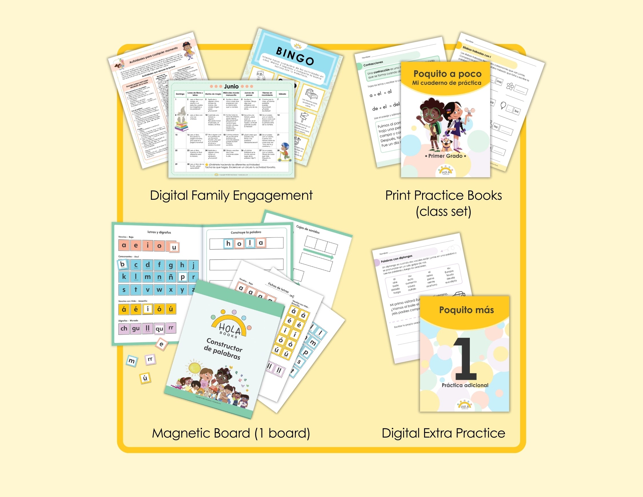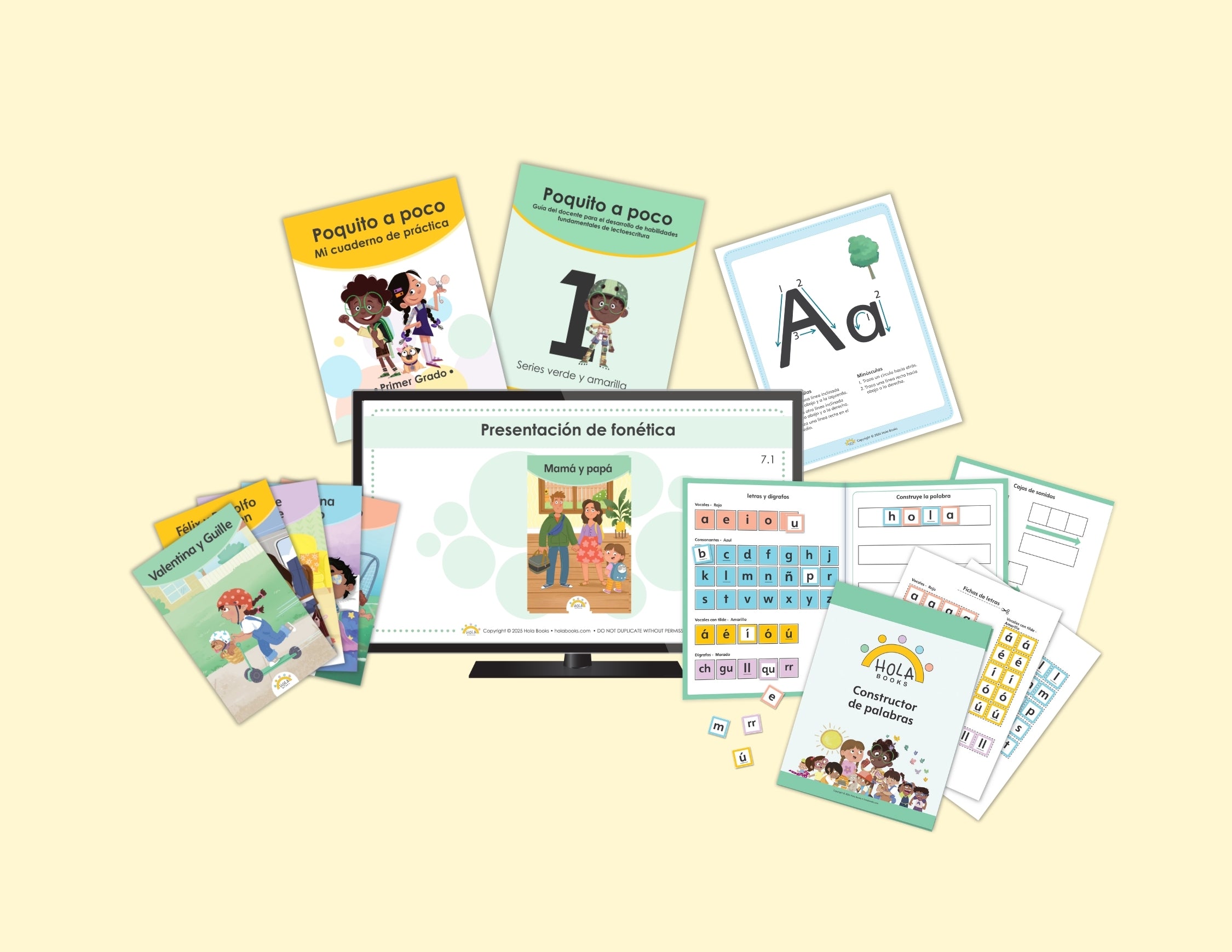 Poquito a poco ("Step by step") is Hola Books’ comprehensive Spanish literacy curriculum for First Grade, grounded in the Science of Reading. Designed to build strong foundational skills, this program supports teachers and students with engaging, research-based tools for whole group, small group, and independent learning.