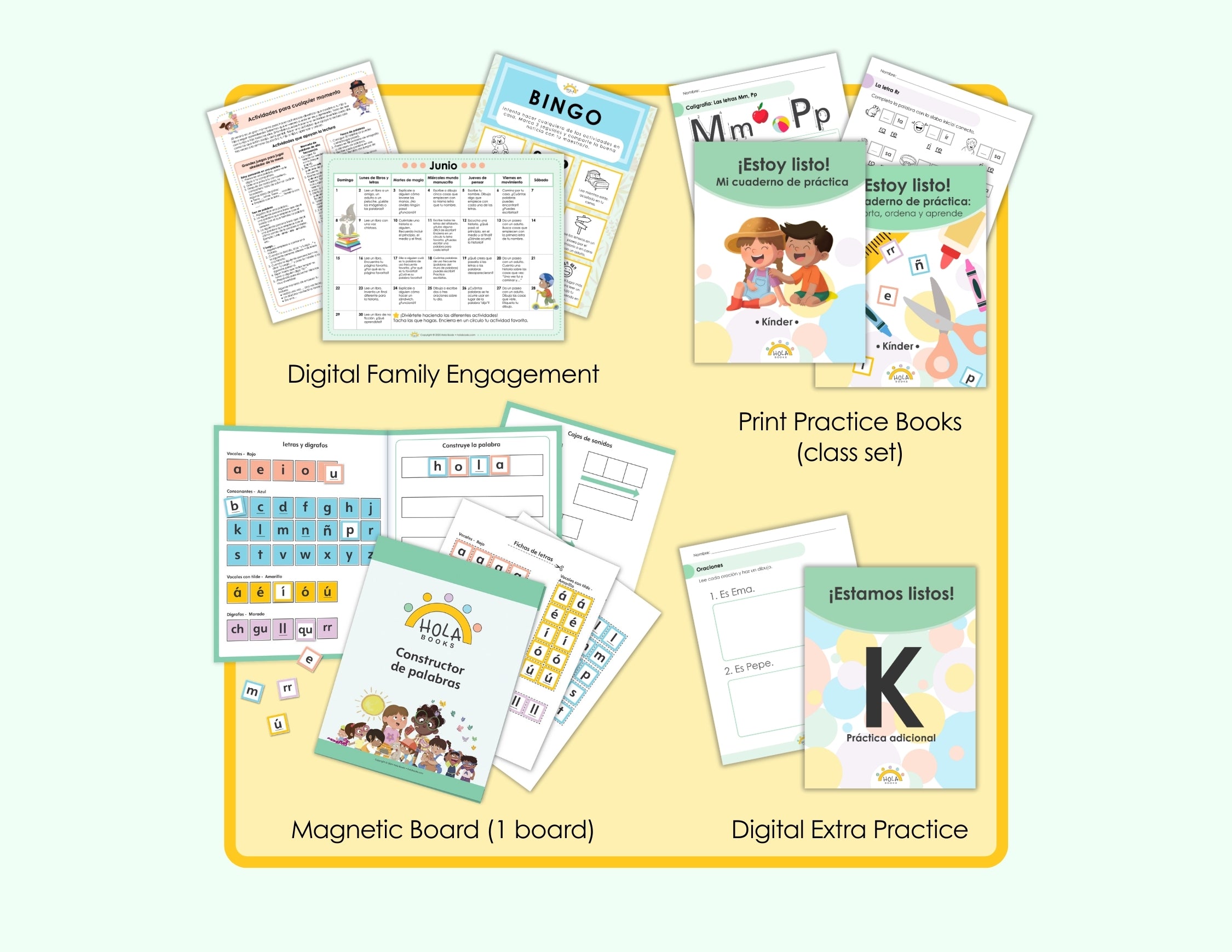 ¡Estoy listo! ("I'm Ready!") is Hola Books’ comprehensive Spanish literacy curriculum grounded in the Science of Reading. Designed to build strong early literacy in Spanish. Created with research-backed methods, this program supports Kindergarten students in developing phonemic awareness, phonics, handwriting, and fluency—step by step.